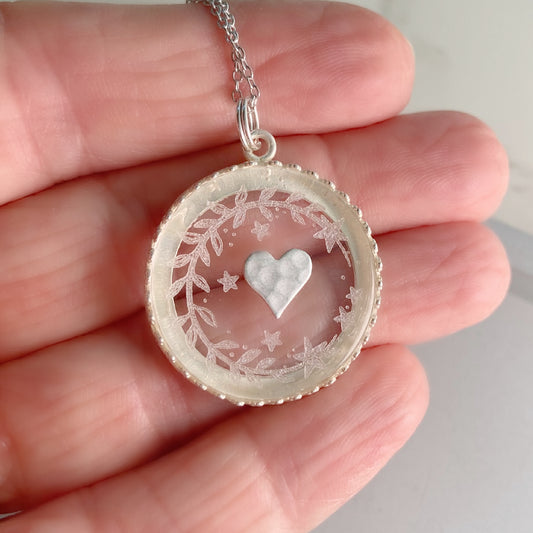 Hammered Heart Etched Glass Necklace