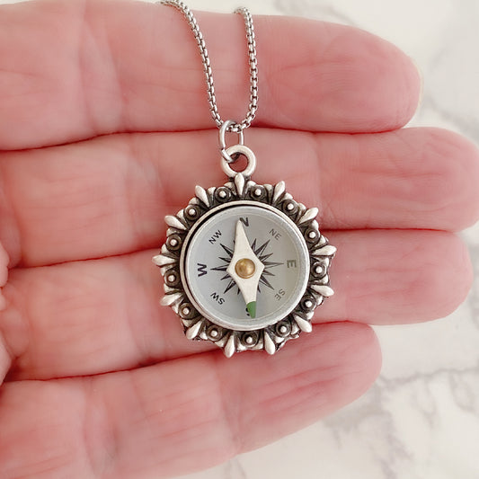 Tiny Working Compass Bracelet, silver-gold-rose gold