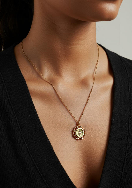 Gold Filigree Working Compass Necklace